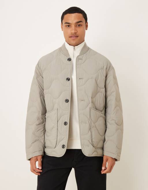 ARKET - Lysegrå jakke med vatteringer og ribstrikket krave