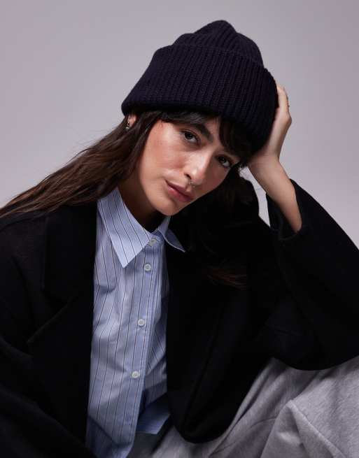 ARKET - Marineblå hue i uld med dobbelt foldekant