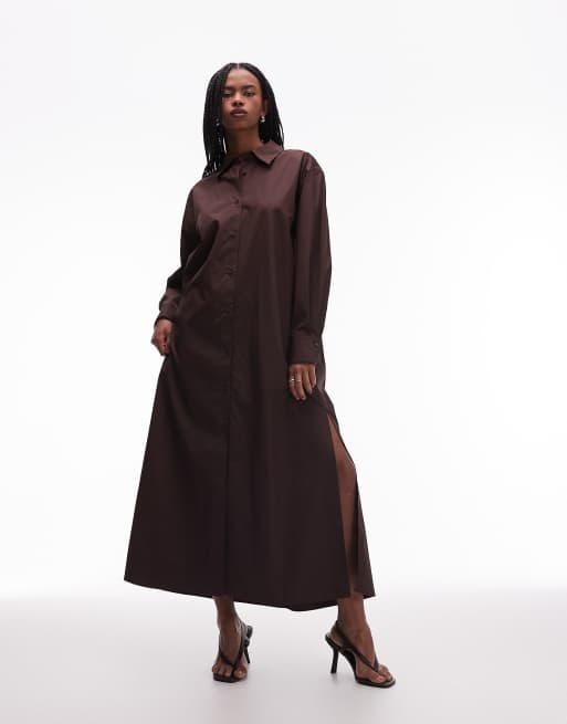 ARKET - Mørkebrun maxi-skjortekjole i ren bomuld med sideslidser