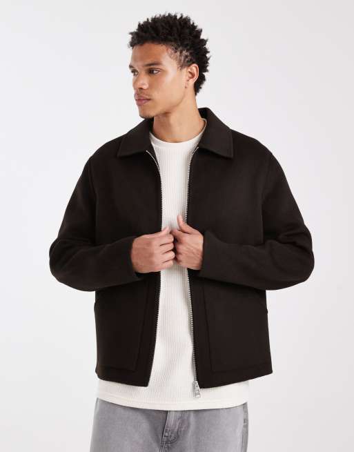 ARKET - Mørkebrun workwear-jakke i to lag uldrigt materiale