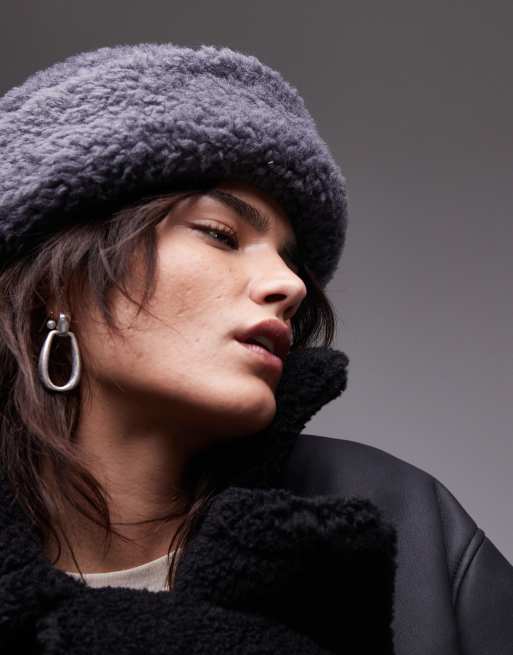 ARKET - Mørkegrå hue med foldekant i premium teddy-uldblanding
