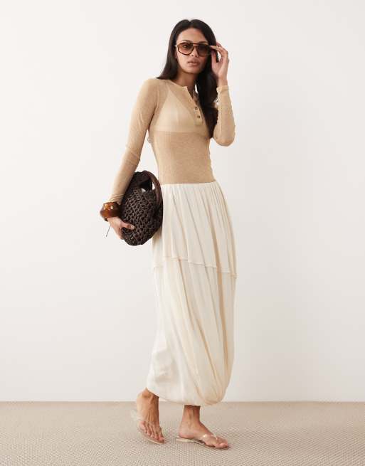 ARKET - Råhvid draperet maxinederdel med volumen