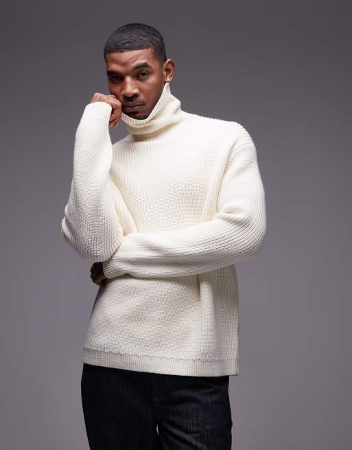 ARKET - Råhvid oversized sweater med rullekrave i ribstrikket uldblanding