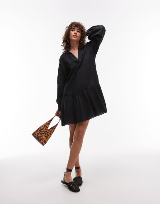 ARKET - Sort minikjole med lagdelt kant og pufærmer i bæk-og-bølge-stof