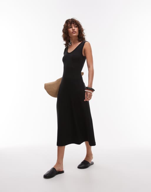 ARKET - Sort ærmeløs midikjole i tæt ribstrik