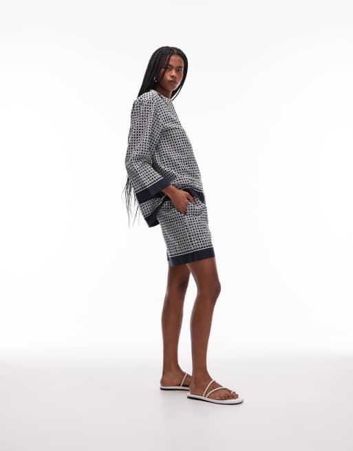 ARKET - Strandshorts med pull-on-talje og blåt abstrakt teglprint i løstsiddende pasform