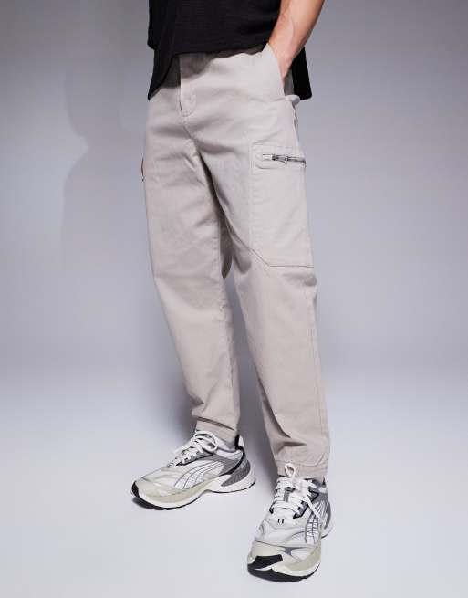 Armani Exchange - Beige cargobukser med tætsiddende buksekanter