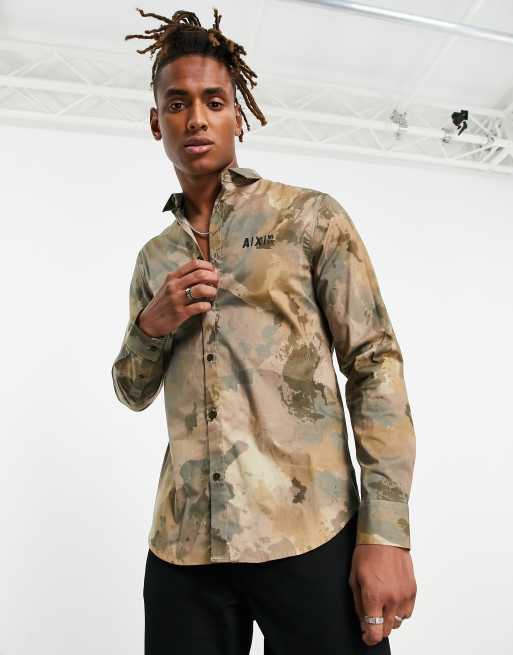 Armani Exchange - Grøn skjorte med camouflage-print i beige