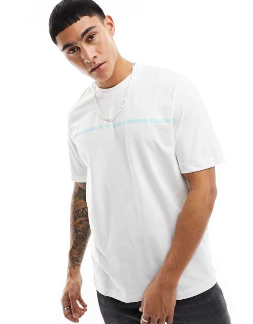 Armani Exchange - Kraftig T-shirt med stribet logo på brystet i råhvid