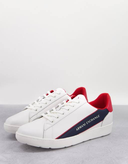 Armani Exchange - Sneakers med logo og læderpaneler i hvid/marineblå/rød