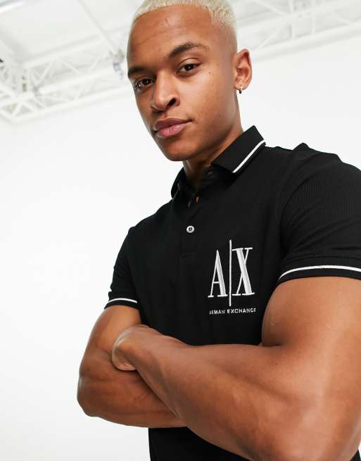 Armani Exchange - Sort poloskjorte med stort logoprint
