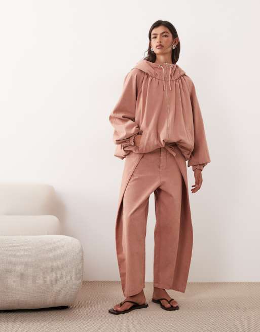 ARRANGE - Bukser i lyserød syrevask med bindebånd foran og gulerodsform