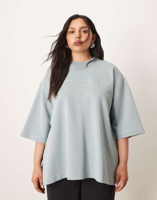 ARRANGE Curve - Blå oversized T-shirt med sømdetaljer i kraftig kvalitet