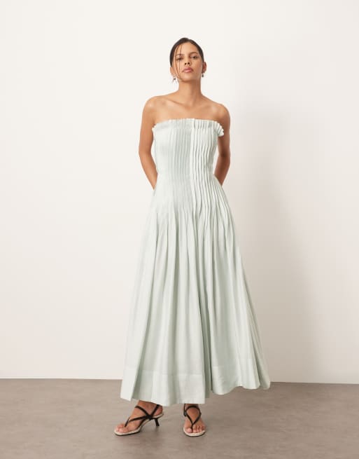 ARRANGE - Lyseblå bandeau-midikjole med sænket talje og pintucks