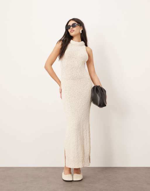 ARRANGE - Råhvid maxikjole med racerhalse i hulstrikket bouclé