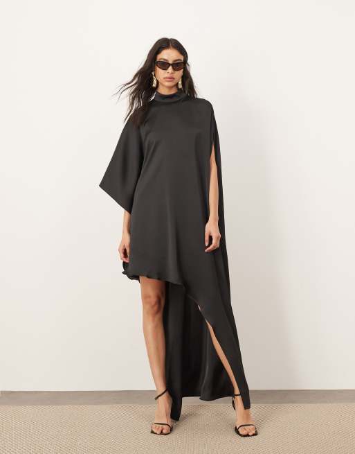 ARRANGE - Sort minikjole med høj hals og kappeærmer samt asymmetrisk sømkant