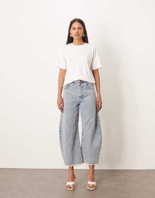 ARRANGE - Sydney - Lyseblå og forvaskede jeans i denim med barrel-ben og cropped snit