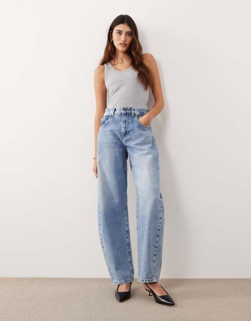 ARRANGE - Tova - Lyseblå og forvaskede jeans med tapered og kurvede ben samt rullekant