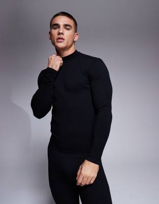 4505 - Ski - Sort sømløs baselayer-top med ståkrave i termostof