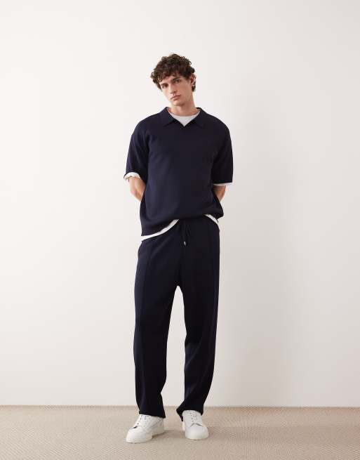 ASOS COLLECTIVE - Løstsiddende marineblå joggingbukser i kompakt strik - Del af sæt
