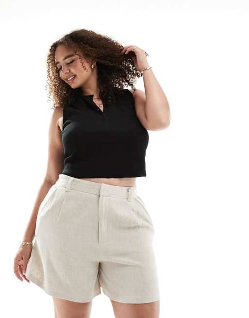 ASOS DESIGN Curve - Beige dad-shorts i hør