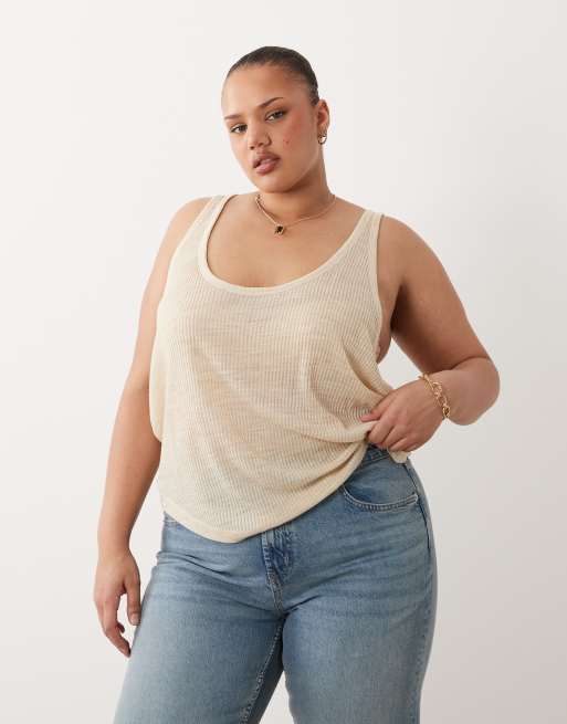 ASOS DESIGN Curve - Beige top med racerreyg og tekstur
