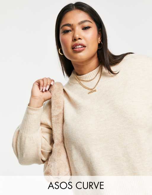 ASOS DESIGN Curve - Beige trøje med rund hals i firkantet pasform