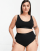 ASOS DESIGN Curve - Betty - Sort, blød bh med dyb, rund hals og højtaljede knickers i bomuld med logo
