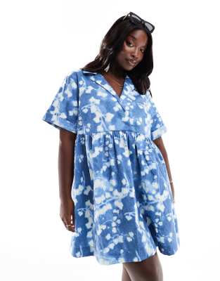 ASOS DESIGN Curve - Blå mini-skjortekjole med reverskrave og korset-kant i abstrakt print