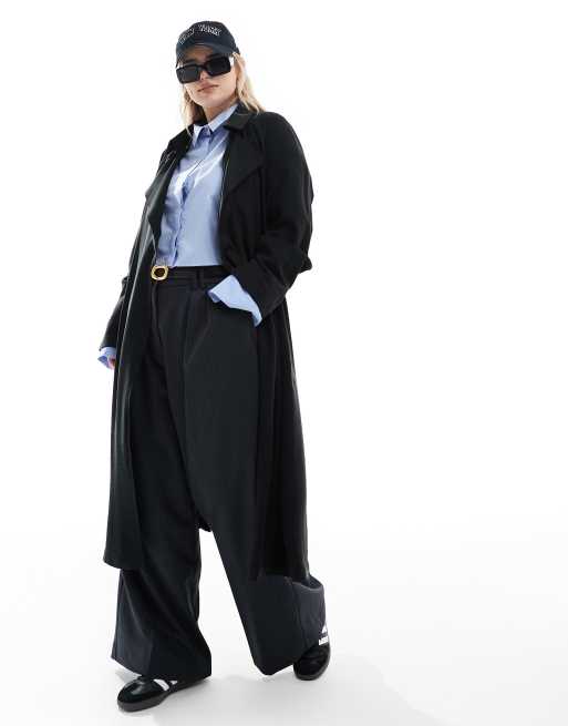 ASOS DESIGN Curve - Blød sort midi-trenchcoat