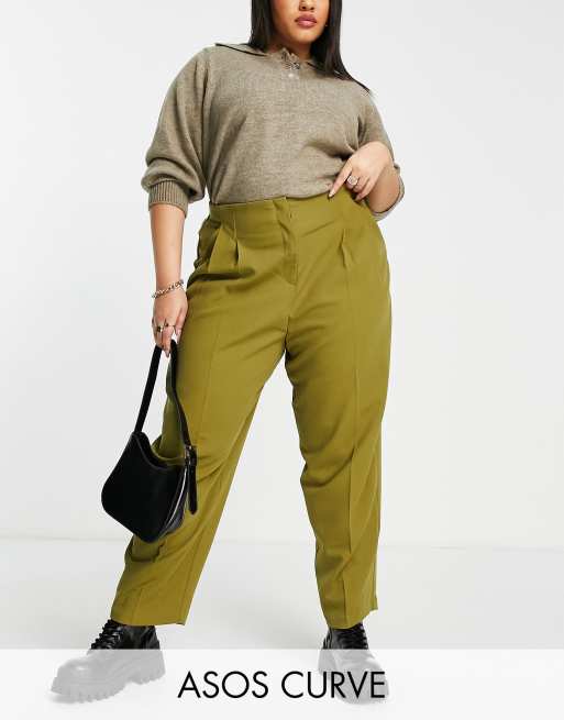 ASOS DESIGN Curve - Bløde løstsiddende mom-bukser i oliven