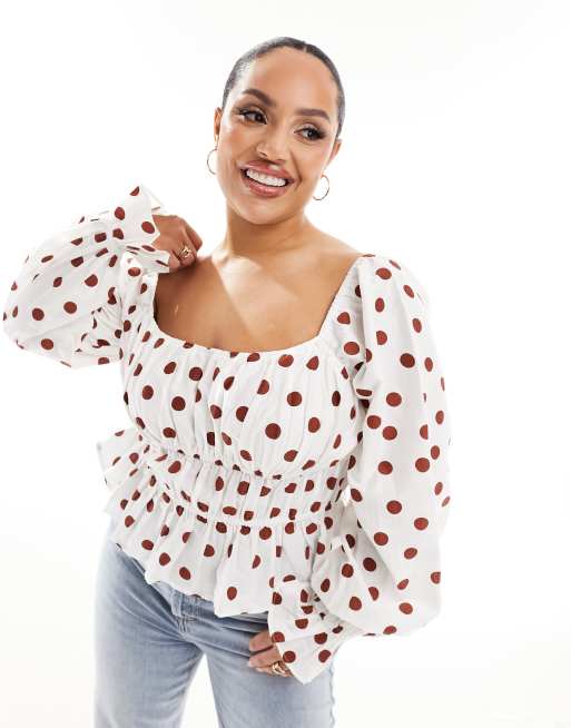 ASOS DESIGN Curve - Bluse med pufærmer, firkantet hals og prikker