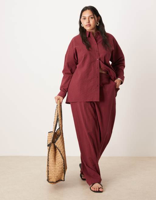 ASOS DESIGN Curve - Bordeaux afslappede pull-on-bukser i bæk-og-bølge - Del af sæt