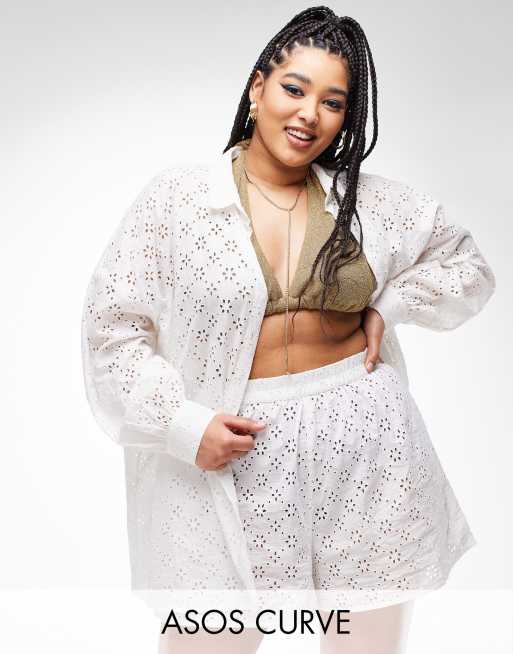 ASOS DESIGN Curve - Broderede strandshorts i hvid