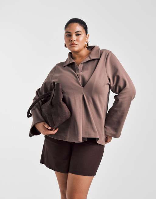 ASOS DESIGN Curve - Chokoladebrun kraftig rugby-top med læg