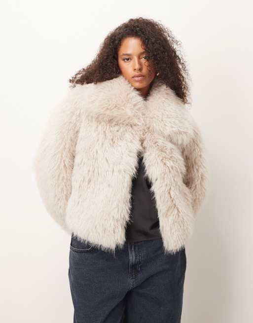 ASOS DESIGN Curve - Cremehvid cropped jakke i imiteret pels