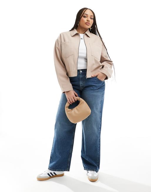 ASOS DESIGN Curve - Cropped jakke i støvet lyserød twill