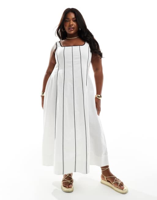 ASOS DESIGN Curve - Elfenbenshvid maxi-sundress med sømdetaljer og kontrasterende kanter i tennisstil