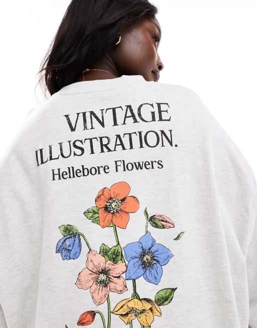 ASOS DESIGN Curve - Gråmeleret og oversized sweatshirt med blomsterprint