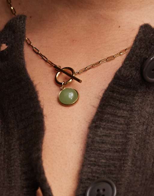 ASOS DESIGN Curve - Guldfarvet kort halskæde med fin kæde og vedhæng med halvædelsten i rustfrit stål