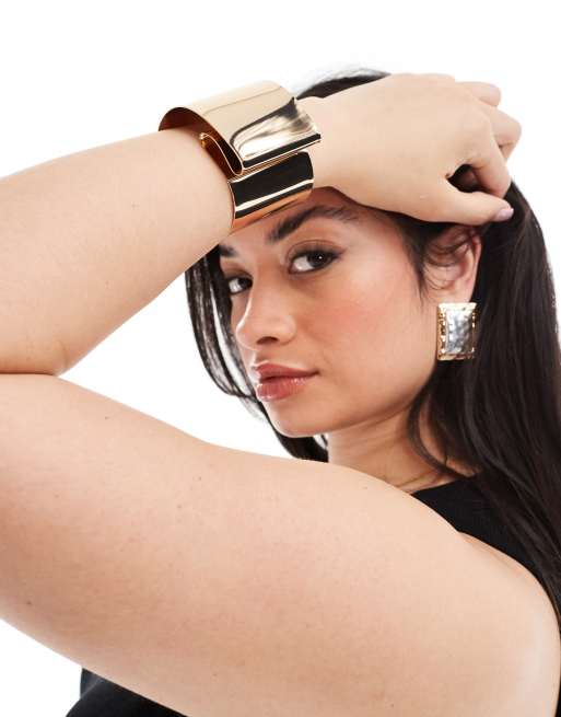 ASOS DESIGN Curve - Guldfarvet manchetarmbånd med foldet detalje
