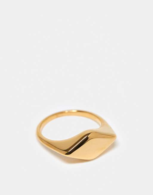 ASOS DESIGN Curve - Guldfarvet ring med signet-design i vandfast rustfrit stål
