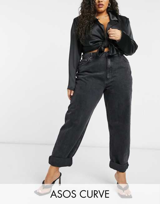ASOS DESIGN Curve - Højtaljede løstsiddende mom-jeans i forvasket sort