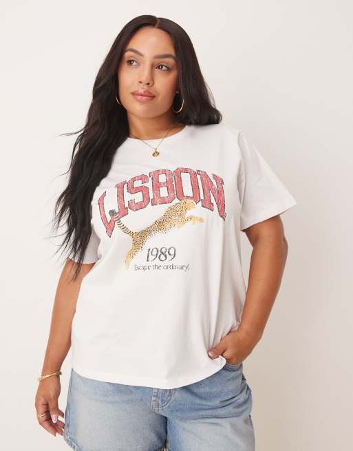 ASOS DESIGN Curve - Hvid T-shirt i almindelig pasform med "Lisbon"-grafik