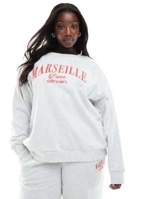 ASOS DESIGN Curve - Hvidmeleret og oversized sweatshirt med broderet 'Marseille'-grafik