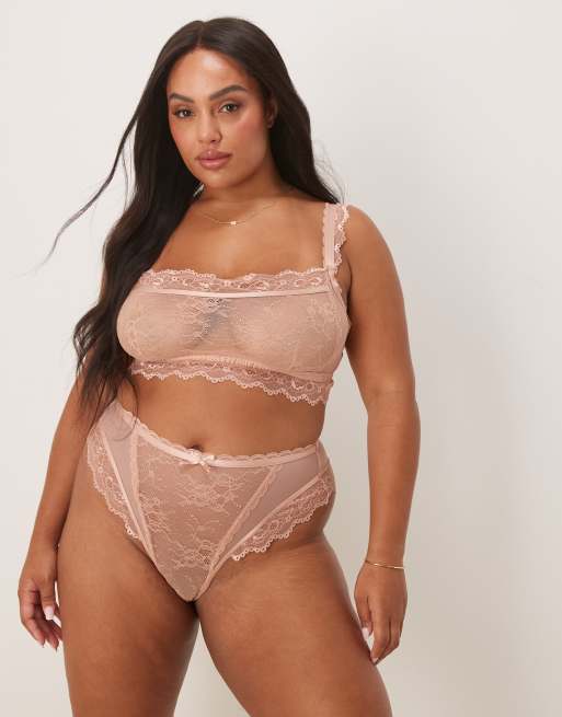 ASOS DESIGN Curve - Ivy - Ferskenfarvede højtaljede brasilianske trusser i blondestof