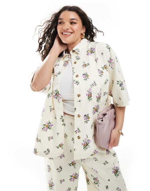 ASOS DESIGN Curve - Kortærmet skjorte med blomstermønster - Del af sæt