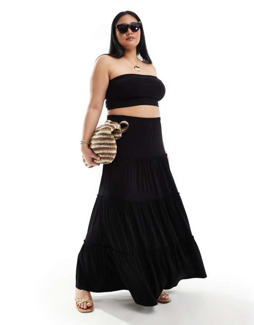 ASOS DESIGN Curve - Lagdelt maxinederdel i sort