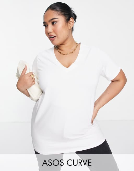 ASOS DESIGN Curve - Luxe - Hvid longline T-shirt med V-hals