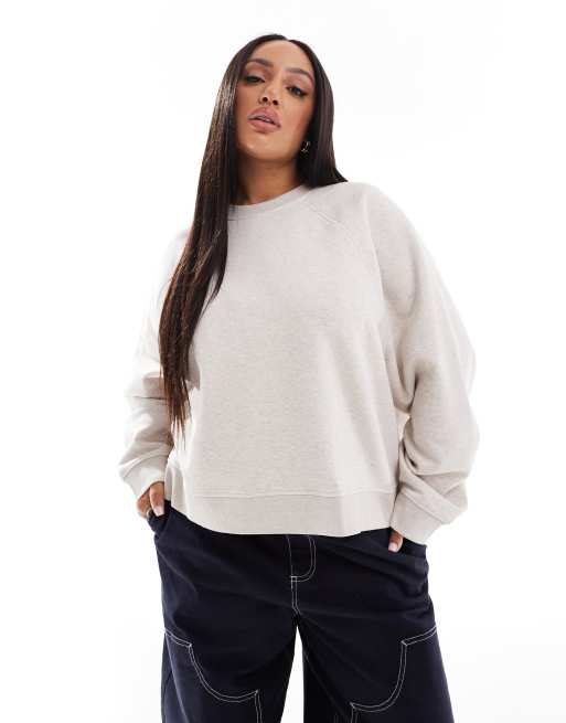 ASOS DESIGN Curve - Lys beige oversized sweatshirt med raglanærmer